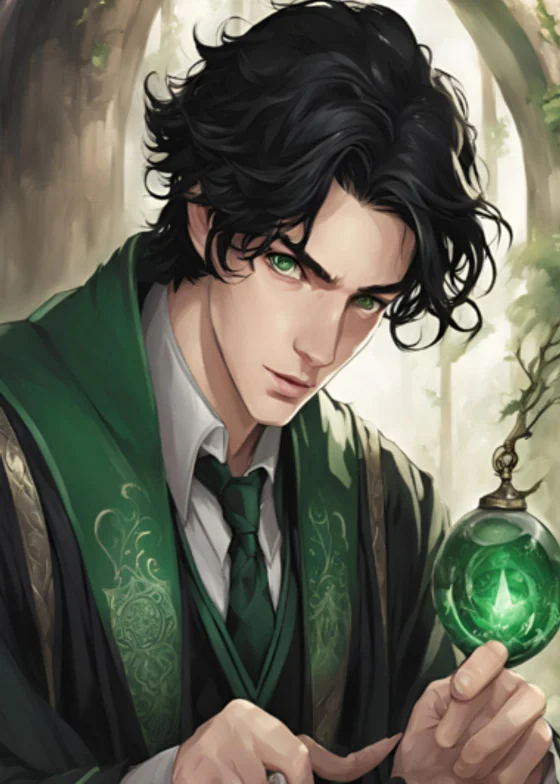 Драко Малфой, который уже был зрелым мужчиной средних лет, коснулся головы Скорпиуса Малфоя и сказал ему.
